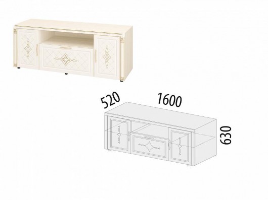 ТВ-тумба «Венеция 32.02» является частью модульного набора мебели для гостиной «Венеция». ТВ-тумбу можно использовать как отдельный элемент, так и в сочетании с другими модулями гостиной. Тумба состоит из выдвижного вместительного ящика, двух ниш с полками, закрытых дверками и ниши для аудио- и видеоаппаратуры. Дверцы оснащены системой плавного закрывания в виде петель с доводчиками. Ножки изделия регулируются по высоте для удобной установки на любую поверхность.